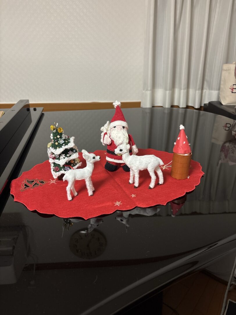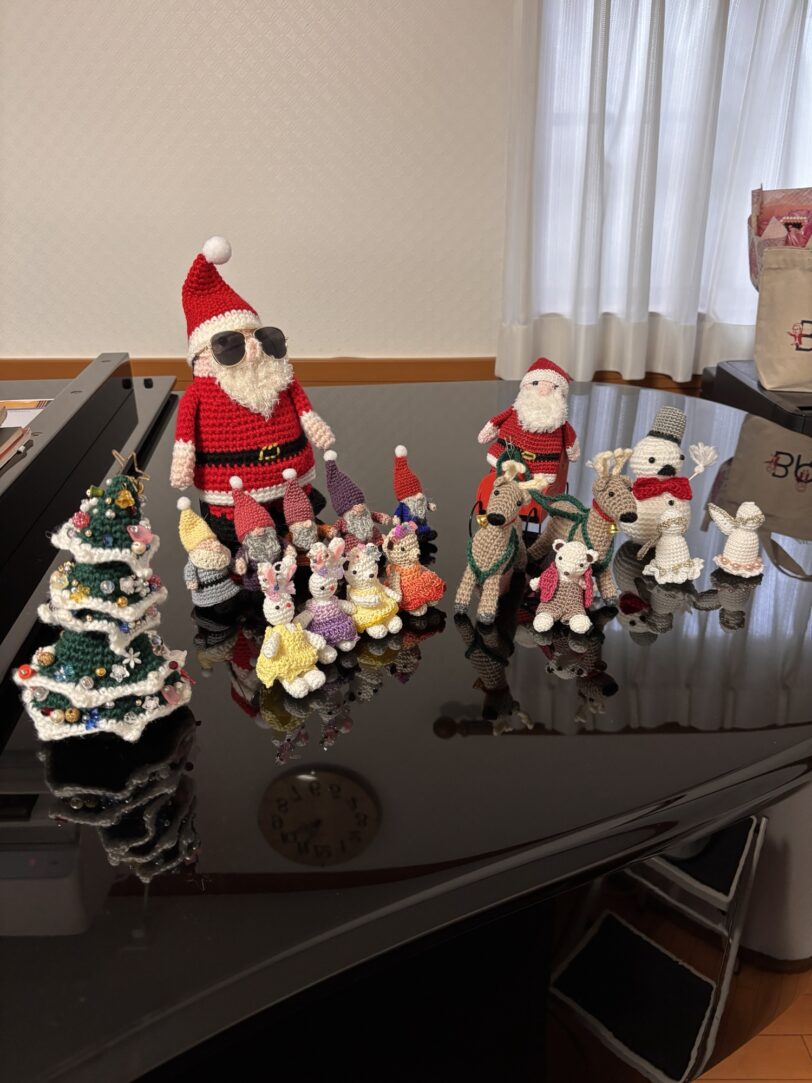前にご紹介した編み物の先生がとっても可愛い手作りグッズを持ってきて下さるので、レッスン室が一気に華やかなクリスマスムードになりました✨